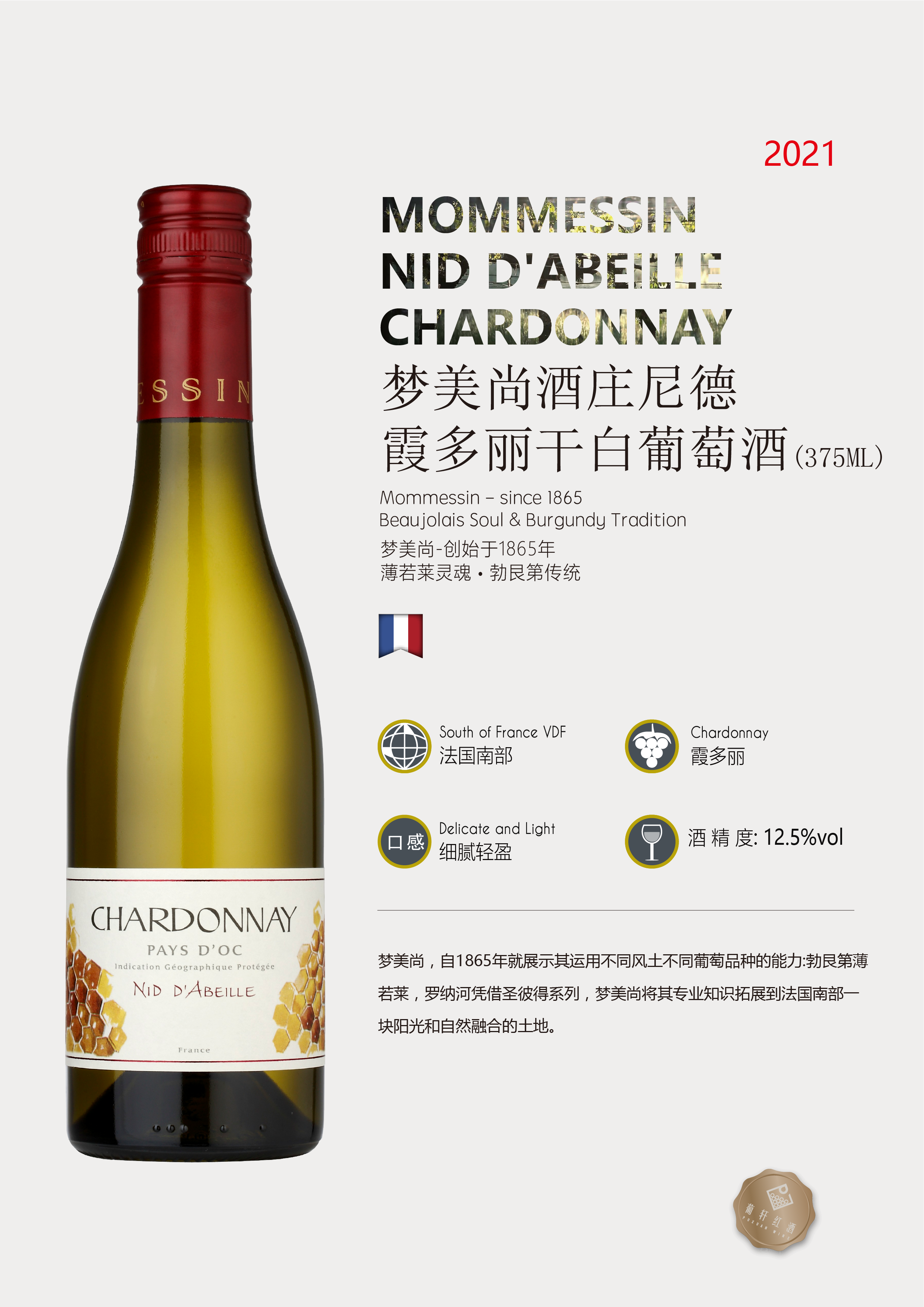 梦美尚酒庄新博若莱村庄级干红葡萄酒