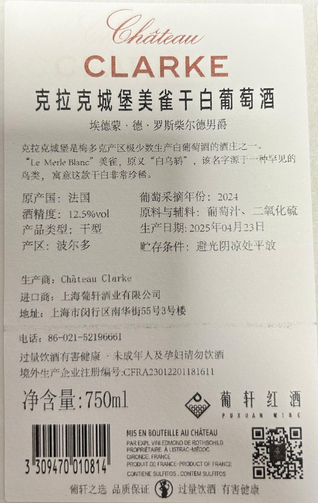 克拉克城堡美雀干白葡萄酒