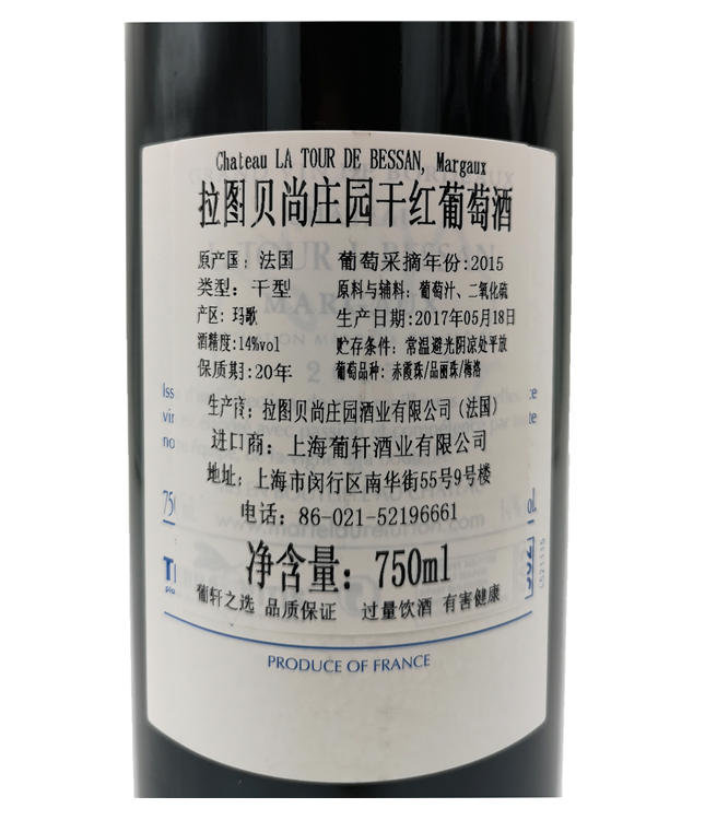 橡木桶陈酿时间 | 葡萄采摘年份 | 2015年 | 产品类型 | 干红葡萄酒 | |