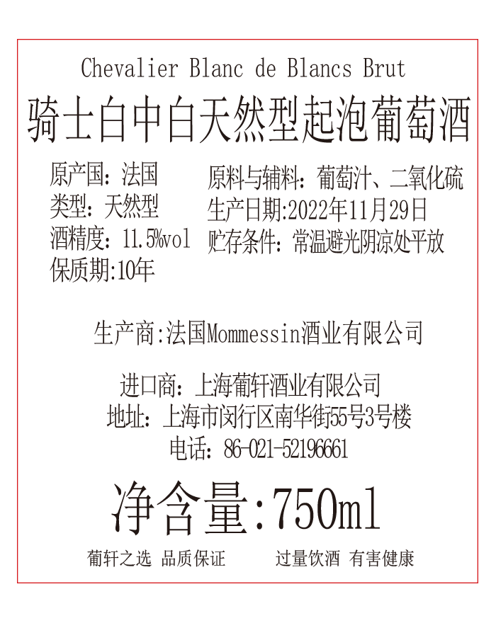 橡木桶陈酿时间 | 葡萄采摘年份 | 产品类型 | 天然型起泡酒 | ||