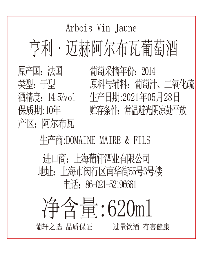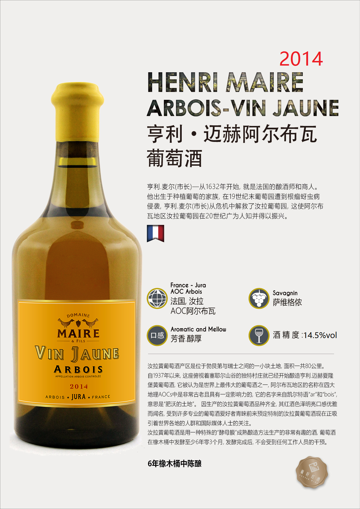 橡木桶陈酿时间 | 葡萄采摘年份 | 2014年 | 产品类型 | ||