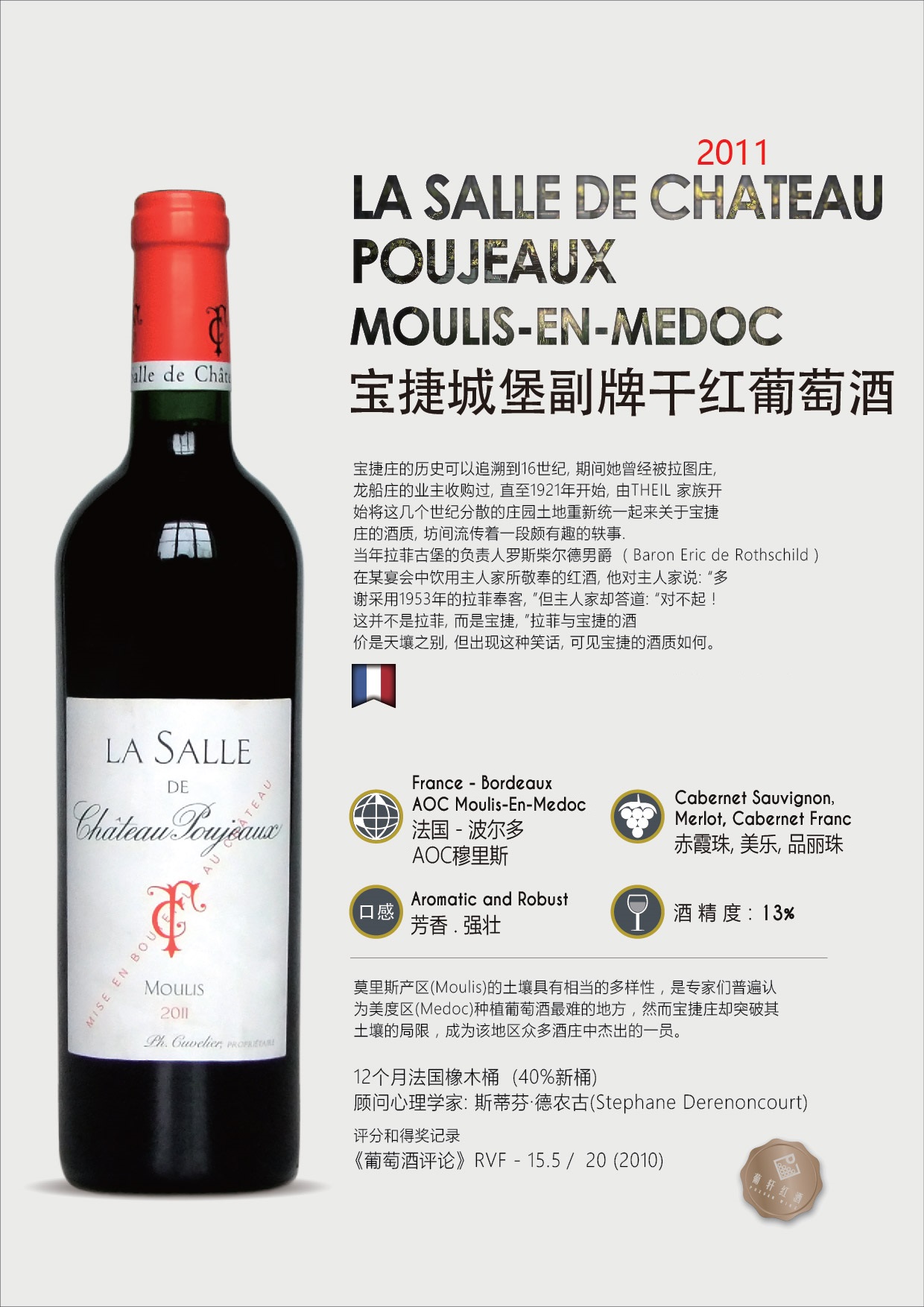 卖点 | 2003年的中级庄修订中,宝捷庄被列为超级明星庄(Cru Bourgeois Exceptionnel),虽然该超级称号到2007年之后随着争议不断被取缔,但至今众多酒评家和贸易商均认为宝捷庄是明星庄的表率者之一。 | 级别 | 酸度 | ||