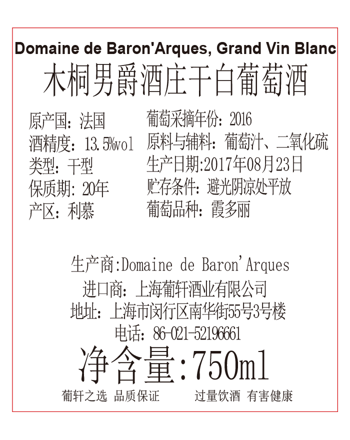 木桐男爵酒庄干红葡萄酒